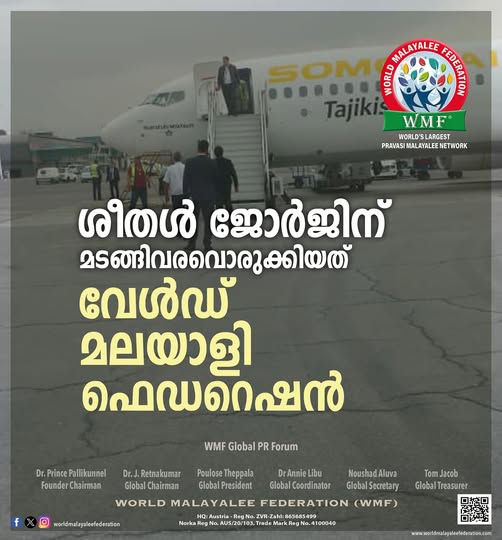 തജിക്കിസ്ഥാനിൽ നിന്നും മടങ്ങിവരാൻ സാധിക്കാതെ കുടുങ്ങിക്കിടന്ന മെഡിക്കൽ വിദ്യാർത്ഥി ശീതൾ ജോർജിന് വഴിയൊരുക്കിയത് ആഗോള മലയാളി പ്രവാസി സംഘടനയായ വേൾഡ് മലയാളി ഫെഡറേഷൻ.