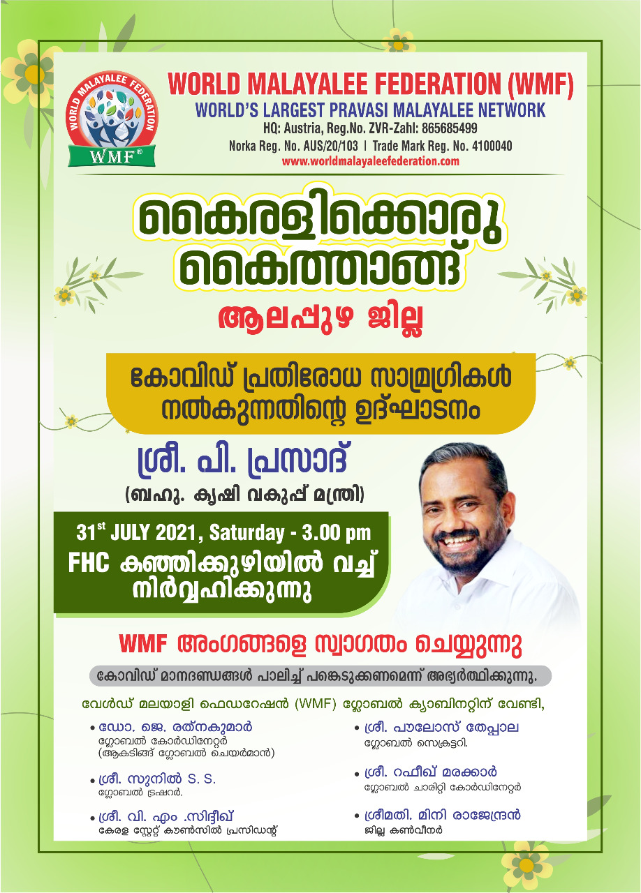 കൈരളിക്കൊരു കൈത്താങ്ങ്.... WMF കേരളത്തിലെ 14 ജില്ലകളിലും കോവിഡ് പ്രതിരോധ സമഗ്രഹികൾ വിതരണം ചെയ്തു.