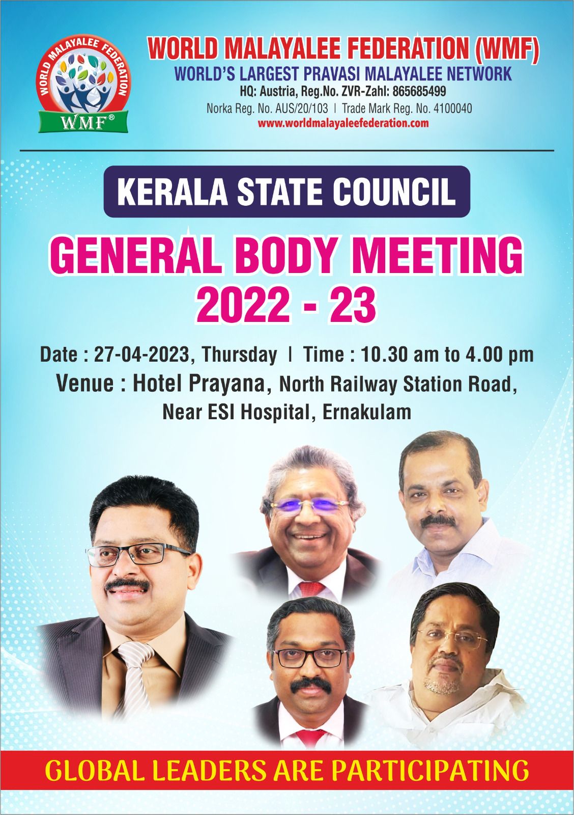 വേൾഡ് മലയാളീ ഫെഡറേഷൻ സ്റ്റേറ്റ് ജനറൽ ബോഡി യോഗം 27-04-2023 ന് എറണാകുളo പ്രയാണ റെസ്റ്റുറന്റ് കോൺഫ്രൻസ് ഹാളിൽ വെച്ച് നടന്നു.
